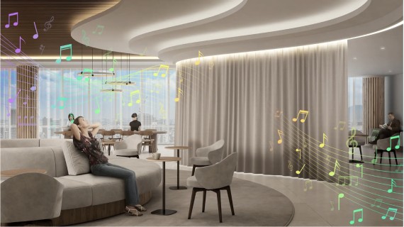 株式会社サンゲツは、次世代の空間を創造するための新たな商品開発の一環として今期よりイノベーション戦略室を新設し、11月4日(火)、株式会社槌屋(本社:愛知県名古屋市、取締役社長:大原 鉱一、以下、槌屋)とそのグループ会社である槌屋ティスコ株式会社(本社:愛知県知立市、以下、槌屋ティスコ)の3社で、音の出るファブリックの商品化に向けた共同開発に着手しました。「音の出るファブリック」は、特殊なフィルムと電極シートを組み込んだ布の組み合わせによる柔軟性に優れた布状スピーカーの技術を、当社のカーテン、椅子生地など、インテリアファブリックに組み込むことで、空間デザインと音響演出の融合により、新たな空間価値を創造します。