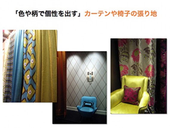しかし数年前から住宅展示場やデザイナーズマンションなどで積極的に色柄のはっきりした壁紙や塗装を使用した物件が登場し、多くの人に色を大胆に使った空間の魅力が認知されるようになってきました。色柄を空間に使うと、そこには個性が生まれ、デザインそのものを楽しむことが可能になります。あまりにも無機質になりすぎた日本のインテリア傾向に対して、インテリアスタイルをもっと楽しもうという積極的な傾向が顕著になってきたのです。