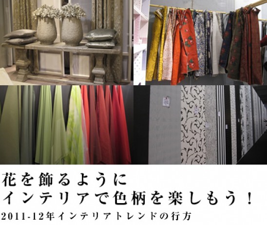 世界的な経済不況、日本での大震災など、世界では重いニュースや現実が私たちを取り巻いています。そんな厳しい時代だからこそ、よりエネルギッシュで明るい色使い、柄の組み合せが注目されています。家の中に明るく美しい花を飾るように、壁紙やカーテンを新しい色や柄に取り替えて、心機一転楽しい住まいを作りませんか? 今年1月にパリで開催された展示会(M&OやDeco off)からそんな花のようなインテリアをご紹介します。