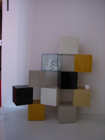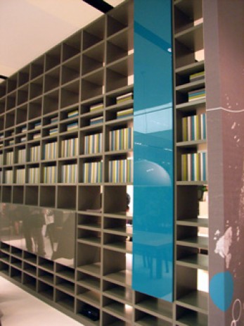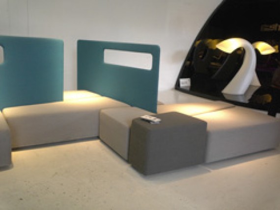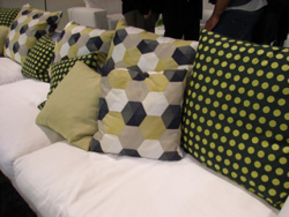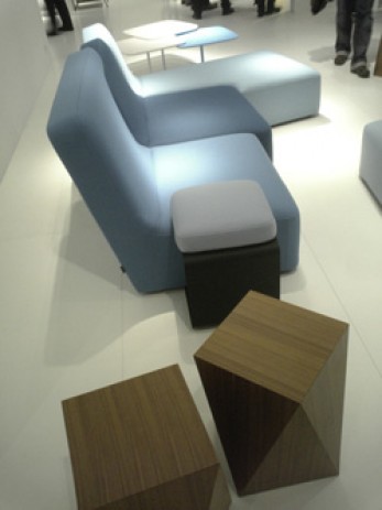 昨年までの「エコ・デザイン」主流から一転、この不景気の重い空気を吹き飛ばすような楽しい色使いの傾向が見られ始めた今年。前半は様々な色で元気になるマルチカラー配色に注目が集まりましたが、前述のサローネ、そしてアメリカ・シカゴで開催されたインテリア展示会「NeoCon(ネオコン)」ではブルーとイエローが新鮮でした。部屋全体は落ち着いたベージュからグレーのグレイッシュな配色でまとめ、その中に、この2色がアクセントカラーとして加わり、新鮮さを演出していました。