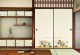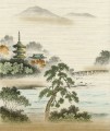 遠くの山並みと古都を望む、奥行きのある山水画です。