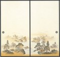 荻原紙店 織物襖紙 糸入り 芦屋織 あしや第十二集No.123 佳景 山水画 風景 松 川 河 自然 岩肌 和室 伝統