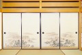荻原紙店 織物襖紙 糸入り 安土織 あづち第三集No.656 古都 山水画 親和金 風景 松 自然 山並み 河 川 岩肌 山並み 滝 和室 伝統