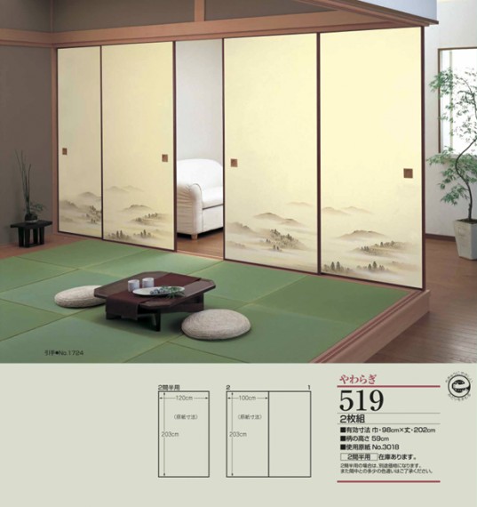 - 『やわらぎ』は、シックハウス対策を考えた、安心・安全な襖紙です。